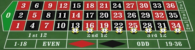 Значит, ставить нужно на любые числа кроме этих двенадцати. При этом зеро не учитывается, но можно поставить небольшую ставку, чтобы не проиграть все.