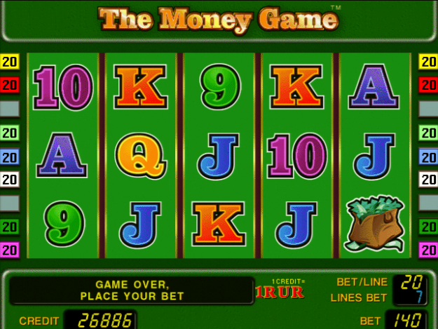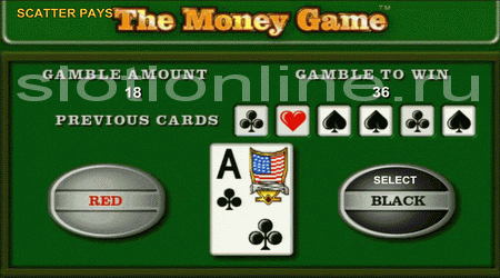 Правила игры на автомате Money Game достаточно просты, здесь есть привычные всем девять игровых линий, и пять барабанов, минимальная ставка в 1 кредит и максимальная в 100 кредитов. Ранее этот видеослот был известен под названием Баксы. Начало игры стандартно: нужно установить ставку, выбрать игровые линии так, как вам велит сердце, нажать на кнопку Старт и наблюдать, как сумма в кошельке будет увеличиваться. Интересно, что игровой автомат Money Game имеет два режима игры – бесплатную и игру на настоящие деньги, хоть и в электронной валюте. Когда вы столкнетесь лицом к лицу с этим видеослотом, то перед вами появится возможность сыграть в риск игру, которая предусматривает угадывание цвета карты. За правильный ответ выигрыш будет увеличен вдвое, если вы не угадали, то, увы, остаетесь ни с чем.