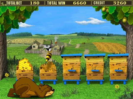 Когда на мониторе появляются три символа с картинкой пассики, значит, вам предоставляется супер-игра. Медведь будет находиться возле пяти пассик. В одной из них спрятана оса, а в остальных – сладкий медок для медведя, и, безусловно, супер-призы для вас. Ваша основная задача заключается в том, дабы верно угадать, где храниться мед. Если же вы попадаете на осу – игра завершается.
