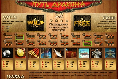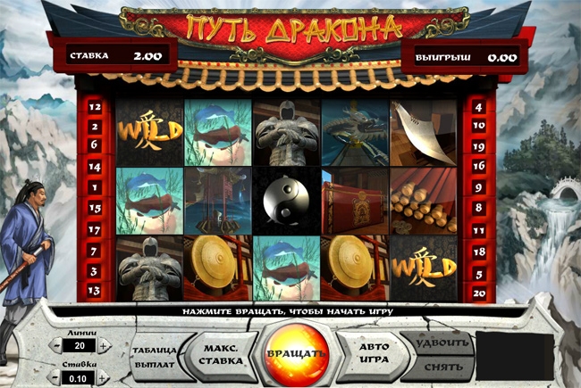 Игровой автомат "Путь Дракона" на мой взгляд, очень интересная и увлекательная buhf. Если обладать определённым навыком, то можно выигрывать неплохие деньги, так как процент выиграша здесь состовляет 95%. Главное все на русском языке, что не составить трудности в игре.