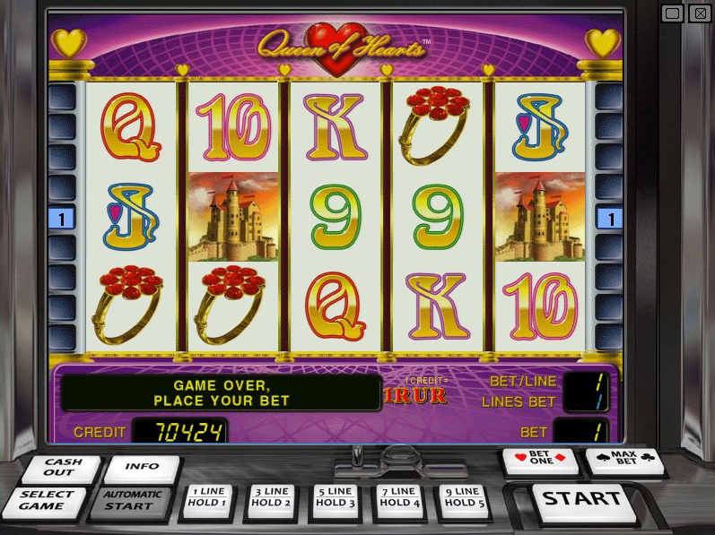 Все поклонники гейминаторов с удовольствием играют в Queen of Hearts, играть в него одно удовольствие. Видеослот Королева Сердец достаточно прост в понимании, управлении, а если вы забыли правила или хотите ознакомиться с таблицей выплат, можете нажать на кнопку Неlp, и в любой момент перед вами появится нужная информация. Играть на этом автомате очень просто и приятно уже с первого вращения.