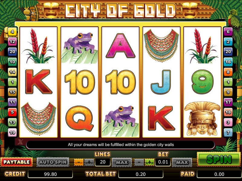 Игровой автомат «Город из золота» увлечет своим сюжетом и щедрыми коэффициентами любого гэмблера. Кроме того он еще и напомнит нам о тесных связях прошлого и настоящего, ведь сюжет игры тесно связан с древними легендами южноамериканских индейцев.