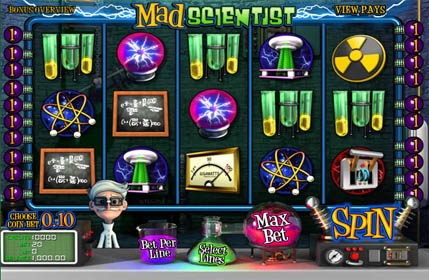 Трехмерный онлайн слот «Сумасшедший ученый», безусловно, порадует своих посетителей прибыльной бонусной системой. К ней можно отнести, к примеру, такой бонусный раунд как «Wild-O-Cution», который автоматически активируется с помощью появления на первом, втором или третьем игровых барабанах символа с изображением трансформатора. Таким образом, трансформаторы будут задействованы, а между ними будет пробегать разряд тока, что будет трансформировать символы в дикие. Именно это существенно увеличит шансы игрока на получение выигрышной комбинации.