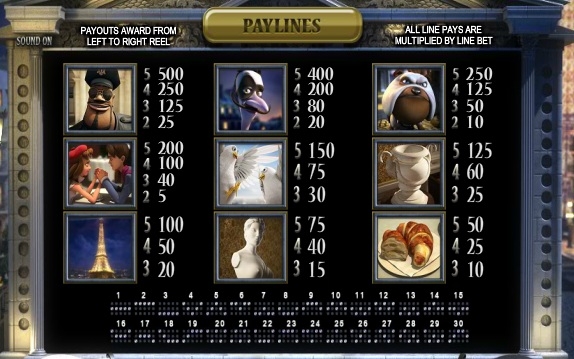 Этот слот включает в себя 5 барабанов и тридцать игровых полос, бонусную игру и бесплатные вращения.