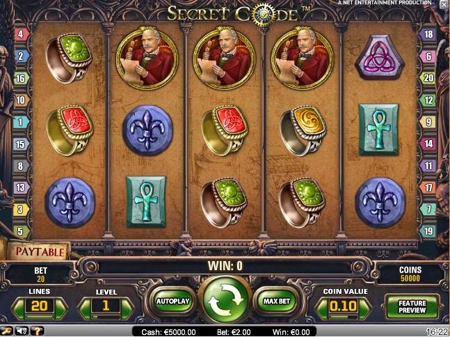 Всем, кому захочется сыграть на интереснейшем эмуляторе «Секретный код», придется невольно ввязаться в увлекательную авантюру, переполненную тайнами, шифрами и древними ребусами. Ваши познания в старинной криптографии могут при этом быть очень скудными, однако на шансы прийти к успеху это никак не влияет, так что начинайте играть прямо сейчас. Перед импозантным главным героем слота стоят многие задачи, Ваша цель только одна – добиться джек-пота, получив удовольствие от процесса, которое, без сомнения, способна доставить эта модель игрового автомата. Такова уж сила тайн древности – они это монументальный привет из прежних эпох. Под силу вам постигнуть загадку таинственных перстней и необычных печатей? Если ответ на этот вопрос был утвердительным – смелее вносите неоценимый вклад в историю! За это вы, конечно же, получите достойное вознаграждение. Криптограф в красном сюртуке расшифровывает послания древних цивилизаций не только из-за альтруистичных побуждений, ему тоже очень хочется найти сокровища, спрятанные когда-то средневековыми монахами.