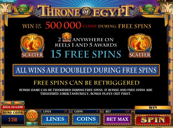 Египет манит к себе не только древними пирамидами, но и таинственными сокровища фараонов. Вам не нужно будет грабить гробницы, сама царица Клеопатра поможет вам извлечь спрятанные драгоценности и золото. Просто станьте игроков в «Throne of Egypt» и прикоснитесь к величию египетского наследия.
