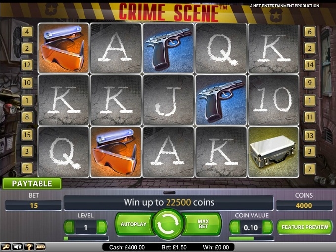 «Место преступления» - это игровой автомат от бренда NetEnt, ведущего производителя софта для виртуальных казино. Вместе с эти эмулятором вы отправитесь туда, где когда-то произошло самое дерзкое ограбление столетия, в мир тайн и обмана. Только самый опытный и удачливый следопыт сможет распутать это преступление и распознать преступника среди множества подозреваемых. Собрать воедино все улики будет очень непросто, но главное верить в себя и ни в коем случае не сдаваться. Деньги исчезли, кажется, что нет никакой зацепки, но вор совсем рядом, а за его поимку обещано многомиллионное вознаграждение.