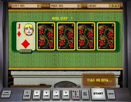 Риск-игра дозволяет приумножить выигрыш посредством удвоения на каждом этапе, при открытии играющим карты большей, недели карта дилера. Порядковый номер попытки отображается на дисплее. В любой момент при открытой карте дилера игрок имеет право прервать риск-игру и забрать свой выигрыш.