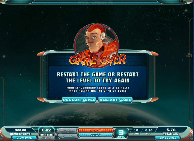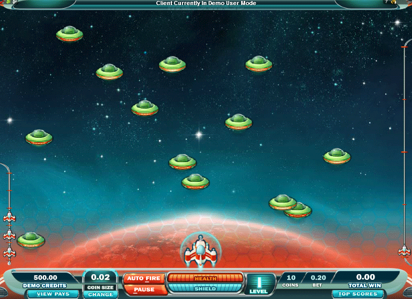Этот видео слот очень напоминает интересную игру для ПК. В автомате нет барабанов, линий, картинок с символами, с которыми обычно ассоциируется игра на слоте. На экране вы будете наблюдать изображение галактики, выполненное достаточно качественно. Сюжет игры заключается в ведении космической войны, в которой игроку предстоит истребить инопланетных агрессоров, чтобы защитить свою планету.