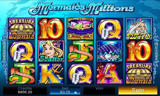 Тематику игрового слота «Mermaids Millions» можно назвать океанской, ведь игроку предстоит лично встретиться с самим повелителем морей и океанов Нептуном, а также его очень привлекательной дочерью Русалкой. На барабанах игрового автомата мы сможете встретить такие символы: старинный сундук с золотом, большая морская ракушка, хрустальный ларец с ценными камнями, а также стандартные карточные знаки, которые обладают своим цветом и морским атрибутом.