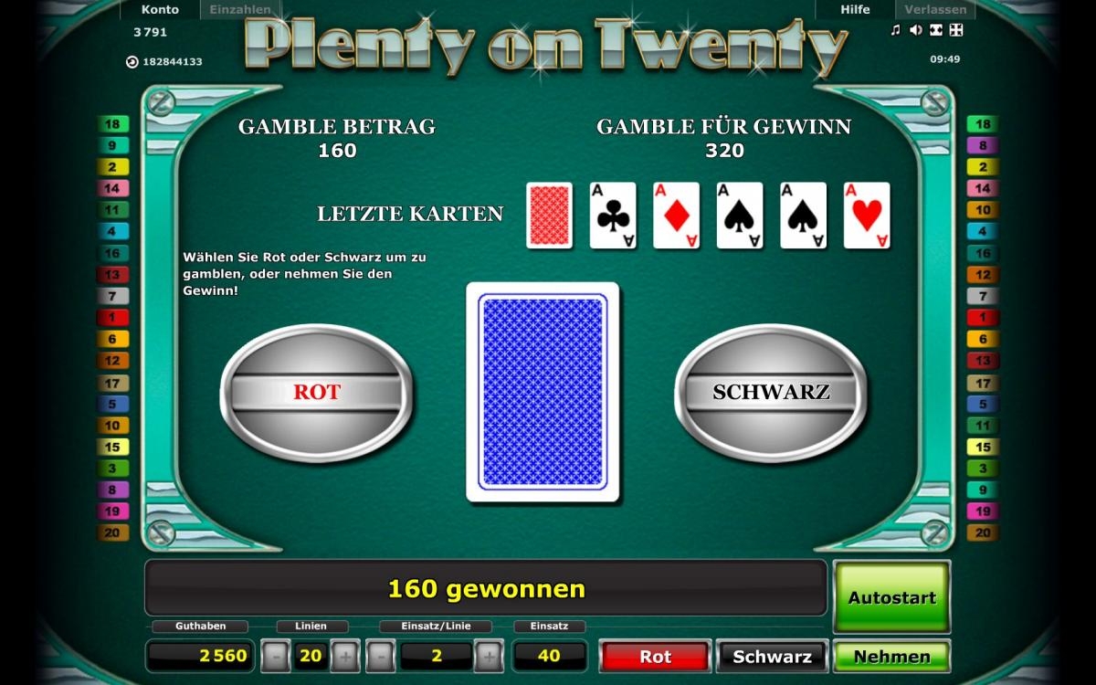 Помните ли вы этот удивительный вкус настоящей победы? Эпоха наземных игровых клубов прочно укрепила в сознании игроков ассоциацию сочных плодов со вкусом победы, ведь фруктовые слоты в те времена были самыми популярными. Ощутить этот незабываемый вкус опять вы сможете, сыграв в автомат под названием Plenty of Twenty. Компания Новаматик очень ценит своих клиентов и очень ценит каждого из них, именно поэтому сначала предлагает тренировочную версию своего гаминатора.