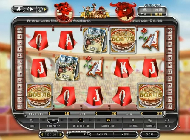 Несомненно, в каждом испанском городе, главным местом выступает арена, где проходит коррида. «Red Corrida» не исключение и арена здесь представлена главным бонусным символом.