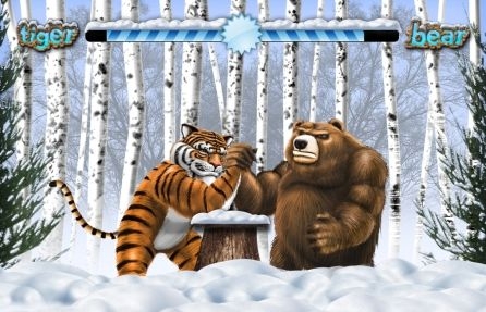 А Вы являетесь грамотным игроком виртуальных казино? Теперь Вы можете испытать нешуточные современные автоматы, расположенные в них! Таковым является игровой слот Tiger vs Bear, предлагающий Вам поучаствовать в состязательной борьбе двух самых сильных хищников Вселенной.