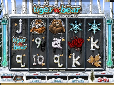 Tiger против Bear – это автомат из пяти барабанов, дарящий Вам аж двадцать пять активных полосок. На любую линию можно ставить, при этом ставка может быть номиналом в 100 долларов. Причем вы имеете возможность от автомата не только зарабатывать деньги, но и бонусные игры. Хочется отметить, что призовой раунд этого слота имеет такое же название Siberian Battle и происходит на другом экране. Для того, чтоб бонусный раунд начал действовать, в центральной игре на первоначальном колесе обязан показаться Tiger, а на последнем – Bear (или же все наоборот). Вам необходимо выбрать только одного участника и наблюдать за концом состязания. В случае победы Вашей ставки, вы приобретете бесплатные барабанные вращения, еще одну добавочную игру либо рентабельные множители.