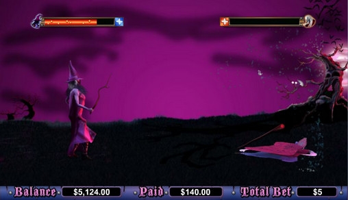 В слоте Witches and Warlocks представлена очень интересная и красочная бонусная игра. Происходит действие на дополнительном экране и игрок может увидеть поединок между ведьмой и колдуном с использованием магических сил. Но, для того, чтобы игра началась, пользователь должен выбрать, кого он считает победителем и снабдить своего героя или героиню оружием. Это могут быть волшебных снадобья в маленьких пузырьках или же старинные свитки с заклятиями, а также многое другое.