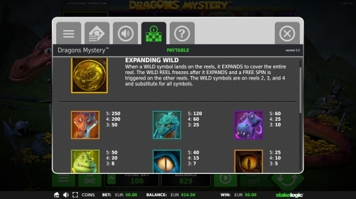 Всю информацию об этом символе можно найти в разделе "Справка". Привычных по другим автоматам скаттеров или же бесплатных вращений в слоте Dragons Mystery нет, а значит, нет и бонусных игр.