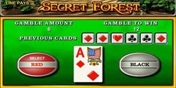 Когда на экране появится более 2 символов Леса, автоматически начнется бонусная игра, которая принесет вам 15 бесплатных вращений барабана. Если посчастливится выиграть, то выигрыш увеличится в три раза. Если во время бонусной игры получилось снова собрать нужную выигрышную комбинацию, то путешествие по таинственному лесу продолжится. Когда в основной игре у вас выпала выигрышная комбинация, можно запустить игру на удвоение выигрыша. Тогда станет доступна игра, в которой нужно отгадать цвет карты, красная или черная. Все просто, а выигрыши растут!