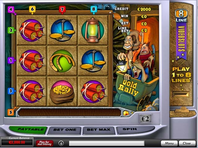 Gold Rally был выпущен с 3-мя барабанами и всего одной линией выплат. Прошло немного времени и компания Плэйтек решила немного модернизировать игровой автомат: теперь у него насчитывалось восемь активных линий выплат. Джекпот Gold Rally ни один раз достигал миллионной отметки.