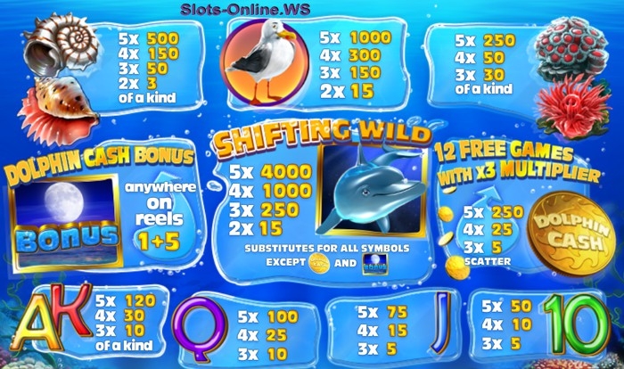 Dolphin Cash порадует своих пользователей качественной графикой и приятными звуками, которые активируются только во время вращения барабанов. У каждого участника есть шанс получить хороший выигрыш благодаря уникальной системе ставок и различным бонусам.