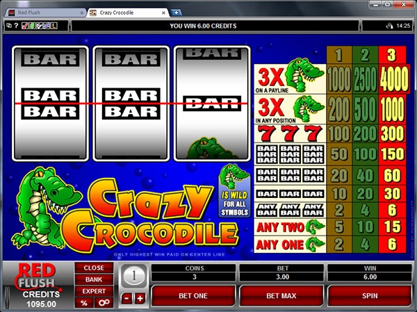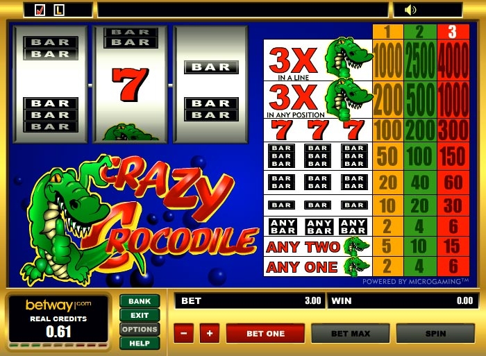 Одним из таких слотов является игра «Сумасшедший крокодил». Исходя из названия, некоторые могут подумать, что и сама игра есть чем-то прикольным и несерьезным, но на самом деле видео слот представляет собой классический вариант игрового автомата. Главным персонажем есть сам крокодил, а также в игре встречаются два символа: семерка и «бары».