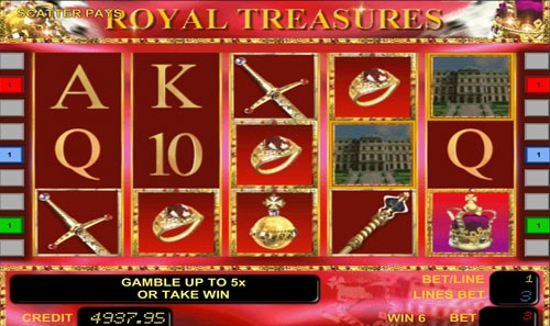 С первых секунд этот игровой автомата «Royal Treasures» уже намекает на то, что его посетитель сможет просто искупаться в богатствах. Каждый желающий сможет ощутить себя настоящим членом королевской семьи, а насколько известно роскошь, безумные богатства, это исключительно королевские привилегии. Поэтому не теряйте времени, скорее крутите барабаны и станьте обладателем бесчисленных драгоценностей, золота, бриллиантов.