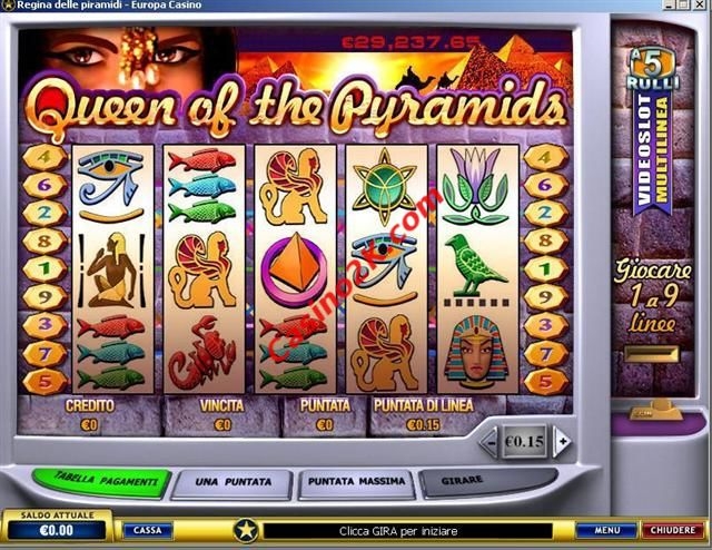 Аппарат «Queen of the Pyramids» строительства египетских пирамид, конечно же, не видел, тем не менее, уже довольно стар. Популярности своей он теряет, наверное, благодаря тому, что часто выдает прогрессивные джек-поты.