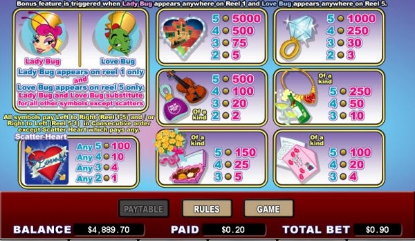 Компания Microgaming приняла решение еще раз удивить своих пользователей симулятором, для которого использовали любовную тематику. Также эксперты компании тесно работали над красочной графикой, приятным внешним оформлением и ласкающими звуками музыки. Важно, что можно играть в автоматы бесплатно и необходимости регистрации.