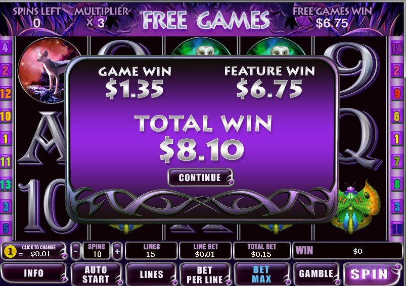 Ваша ставка может значительно увеличится от 2 до 750 раз с помощью стаи бабочек, поляны цветов, семьи филинов. Необузданный лес просто переполняют различные сюрпризы.