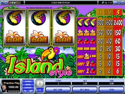 На этом слоте игра на удвоение называется «Пираты» и имеет она свои определенные особенности. В большинстве автоматов нужно выбирать одну из пяти карт, а в «Острове» - орла или решку. Монетку при этом подбрасывает дилер. Получается, что исходов у такой игры может быть лишь два, в отличие от аппаратов, производимых «Игрософтом».