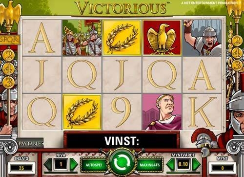 Игровой автомат «Викториус» станет настоящей отдушиной для каждого фаната исторических слотов. Сюжет, графика, конечно же, очень важны, но при выборе игрового автомата немаловажное значение придается и бонусам. Спешим вас обрадовать, сказав, что в «Викториусе» предусмотрено одно весьма ценное поощрение такого рода – бесплатные вращения. Раунд с ними активируют Лавровые венки, а продолжительность данного раунда зависит от количества таких символов, кстати, выпасть они должны подряд. Пять лавровых венков приносят двадцать пять бесплатных вращений, четыре – двадцать, три – пятнадцать.