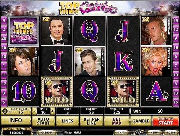 Особенным игровой автомат под названием «Top Trumps Celebs» делает уникальная функция – игрок имеет возможность самостоятельно выбирать изображения символов. Выбор среди фотографий достаточно широкий, представлены практически все самые известные звезды Голливуда. Если доберетесь до бонусной игры, то пройдетесь по красной оскаровской дорожке.