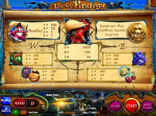 Этот символ имеет в игровом автомате Lucky Pirates особенную функцию. Черепушка оплатить вам не только комбинации слева от себя, но и все, что находятся вокруг. Как раз то, что нужно для реализации всех коварных планов.