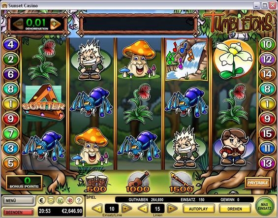 Tumbletons славится еще символом "Волшебное дерево". За каждое выпадение этого символа вы получаете баллы. Когда вы насобираете 1000 баллов, вы получаете возможность сыграть в призовую игру двух уровней. Эта игра открывается в новом окне. Первый этап: вы должны выбрать нужный предмет из предложенных. Если же вы не угадаете, раунд будет закончен. Далее вы можете составить мелодию из предложенных нот. Ее звучание может повлиять на ваш доход. Поэтому людям с музыкальным слухом обязательно повезет.