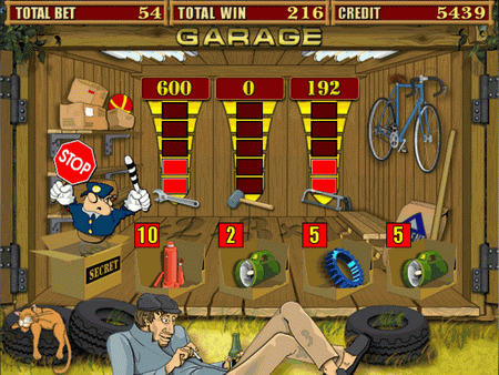 Вращения барабанов преподносят каждый раз сюрприз, который способен обрадовать и наоборот, огорчить. Если выпало одновременно несколько символов ящика, то автоматически начинается бонус-игра, в которой появляется открытый гараж, а внутри находится 5 ящиков с загадочным содержимым. Задача игрока – открыть ящик с самым большим выигрышем. Но не стоит расслабляться, в одном из ящиков сидит «Гаишник», а его появление останавливает игру, возвращая игрока в основной раунд, сохраняя при этом весь полученный выигрыш. Если при открытии ящиков выпадет гаечный ключ, пила или молоток, то игрока ждет дополнительный выигрыш, размер которого отображается тут же, на задней стенке гаража. При выпадении трех ящиков и совпадении одной выигрышной линии в бонусной игре игрок получает накопительное преимущество.