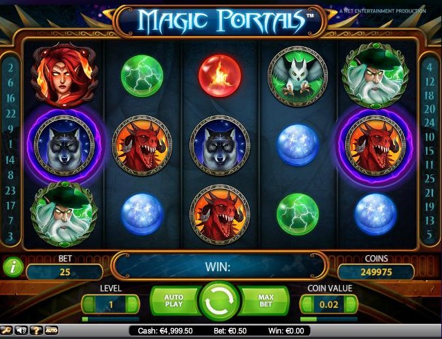 Волшебные порталы - это пяти барабанный непрогрессивный слот от компании Net-entertainment с 25-ю линиями выплат, у которого есть дикий символ, бесплатные вращения, а максимальный джек-пот составляет $5,000 долларов.