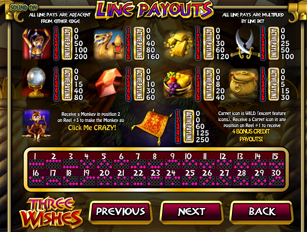 Данный игровой автомат "Three wishes" дает возможность любому игроку совершить увлекательное путешествие в восточную сказку, где его будут ожидать огромные призы и исполнение желаний.