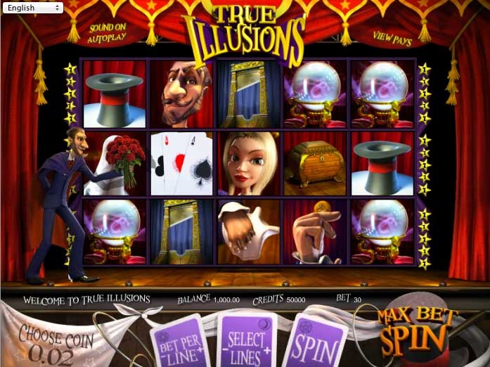 Онлайн автомат «True illusions» оснащен пятью игровыми барабанами и имеет в своем распоряжении тридцать линий выплат. Это и будет место, где известный маг и чародей будет творить чудеса магии. Данный увлекательный автомат имеет в своем арсенале такие игровые символы: белые голуби, колода карт, кролики и другая различная магическая атрибутика. Чтобы стать обладателем джекпота, который становит размер текущей ставки умноженной в 2, 5 тысячи раз, игроку необходимо собрать на одной активной линии пять одинаковых игровых символа.