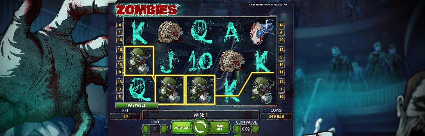 Есть еще у Net Entertainment игра про зомби, вышедшая в 2012 году. Здесь на барабанах настоящий хардкор: глаза, мозги, окровавленные топоры с дубинками для уничтожения зомби, бензопила, маска, контейнер с вирусом. На заднем фоне ужасающие звуки, похожие на шепот, то ли еще что, но в целом становится немного жутко. Как раз на это и был расчет. Пятибарабанный игровой автомат Zombies с 20 линиями выплат были созданы для того, чтобы вы почувствовали атмосферу, напоминающую по духу мир Resident Evil. Вы видите ужасные лица мертвяков, а к вам тянутся холодные, страшные, окровавленные руки. Если хотите от них увернуться, в этой игре есть полный арсенал нужных средств.