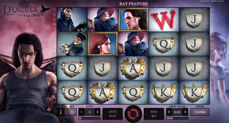 У игрового автомата Dracula есть еще одна любопытная функция. Во время превращения Дракулы в стаю летучих мышей, они атакует барабаны. После этого на некоторых позициях появляются повторяющиеся символы, что, в свою очередь, увеличивает шансы на выигрыш.