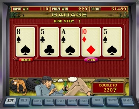 Игровой автомат Garadge содержит бонусы, которые представлены пятью ящиками, в которых находятся различные предметы и выделенный полицейским Exit, то есть Выход. Молоток, пила, ключ – накапливают по одному делению из трех. После того, как одно деление заполнено, находящаяся над ним сумма добавится к имеющимся кредитам. Отметим, что накопительные бонусы продолжают заполняться и тогда, когда один игрок покинул игру, а на его место пришел другой. Даже в ситуации, когда этот автомат свободен, он продолжает показывать, сколько же еще необходимо докачать в делениях для получения бонуса.