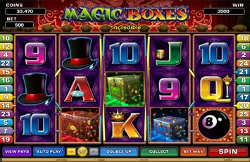 Аппарат от компании Microgaming под названием «Magic Boxes» - это один из самых забавных игровых автоматов, который позволит игроку почувствовать себя самым настоящим фокусником и заставить опять верить в сказки. Загадочная атмосфера игры создается ее особенными символами – волшебными цилиндрами, колодами карт, сундучками с богатствами и т.д. Долгожданный джек-пот приближают к игроку многочисленные бонусы и наличие специальных символов.