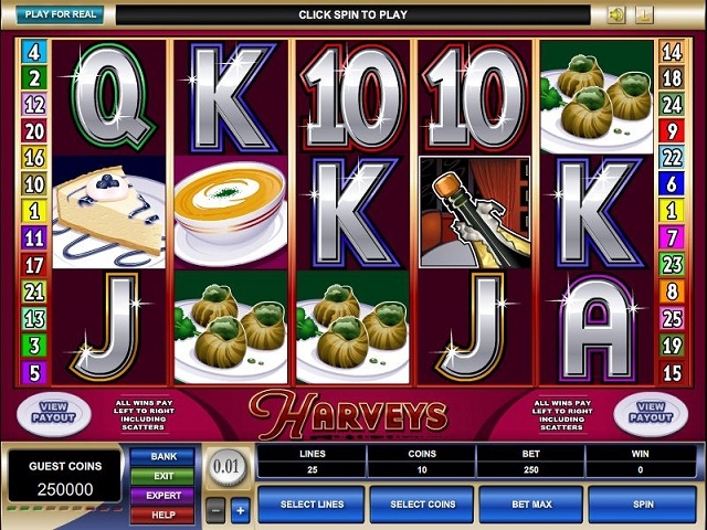 Отведать изысканные морские деликатесы своих уважаемых посетителей приглашают популярнейшие рестораны – именнто такова тематика игрового автомата под названием «Harveys». Разработали этот увлекательный, красочный, а самое главное щедрый автомат, специалисты известной компании Microgaming. Производитель программного обеспечения Микрогейминг всегда предлагает игрока достойные слоты. Вероятно, они были убеждены в том, что игроки не смогут устоять перед вкусной пищей и обязательно обратят внимание на их творение. Даже самое дорогое блюдо, например, устрицы с шампанским, вы можете заказать в ресторане, куда отправитесь вместе со слотом «Харви». Оплата чисто символическая – вращение барабанов.