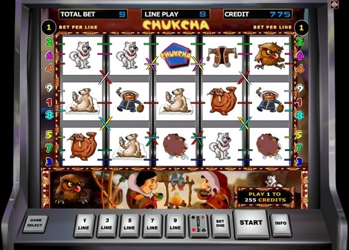 Интереснейший и очень красочный игровой автомат под названием «Chukchi Man» ( рус. «Хозяин Чукотки» ) – это пятибарабанный слот на девять линий. В нем доступна игра на удвоение и три бонусных раунда.