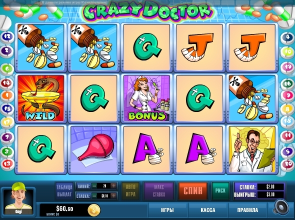 Если вы желаете получить дозу острых ощущений, то лучше всего для этого подойдет интернет-казино Azart Play, а конкретнее игровой слот «Сумасшедший доктор». Именно это игрище принесет вам неожиданный адреналиновый всплеск, огромное количество эмоций и, возможно даже, приличную сумму денег.