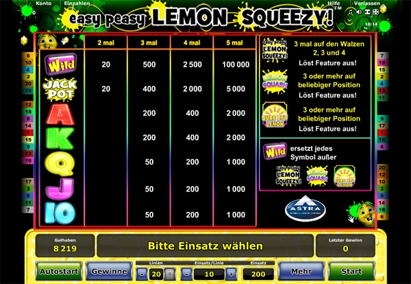Easy Peasy Lemon Squeezy именно такое причудливое рифмованное и смешное название получил новый автомат, выпущенный молодой дочерней компанией группы Novomatics.Название компании-разработчика – Astra Games.