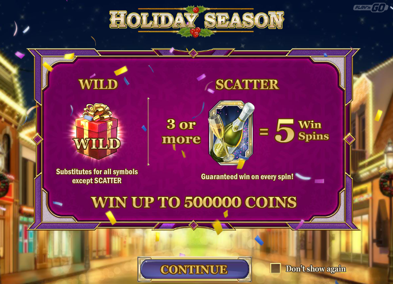 Разработчик программного обеспечения для азартных игр Play’n Go специально к Рождеству готовит гемблерам подарок в виде нового игрового автомата под названием «Holiday Season» (рус. «Сезон праздников»). Данный слот позволит азартным людям насладиться атмосферой зимнего праздничного сезона, а также посоревноваться за приятные денежные вознаграждения.
