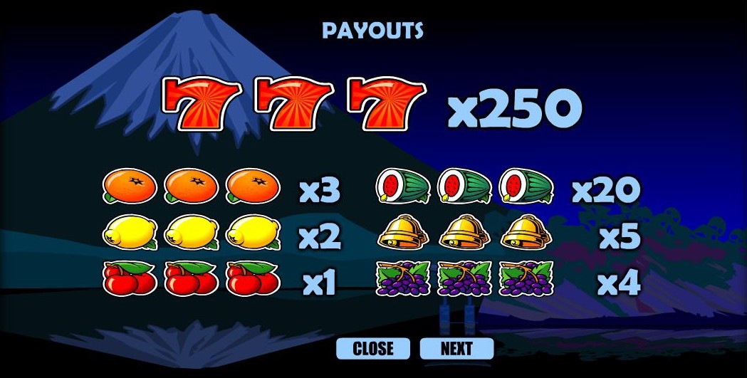 В игре нет дикого символа, как вы уже, вероятно, поняли. Среди символов вы увидите традиционные колокольчики, виноград, апельсины, лимоны, вишенки и арбуз. Есть и удачливый символ семерок, который принесет вам выигрыш джекпота в размере 250 ставок.