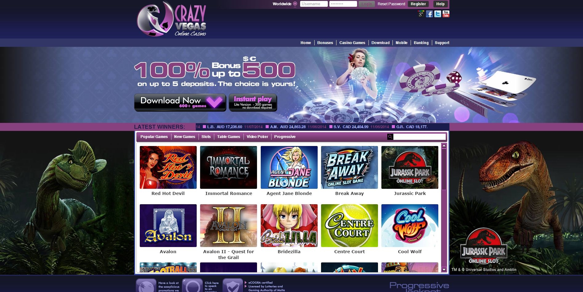В дополнение к этому предложению, казино Crazy Vegas также представляет новую платформу Instant Play также известная как 1-Click, которые позволяют игрокам получить все свои любимые игры прямо с домашней страницы казино с помощью только одного клика.