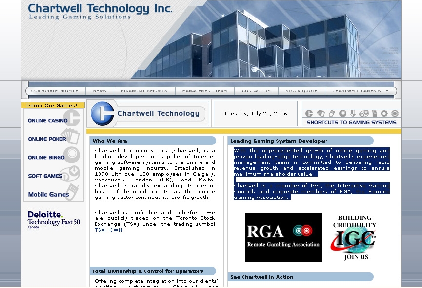 Акцентирование внимания «Chartwell» происходит на рынке в регламентированном плане, что позволяет всем клиентам великолепно решать вопросы в области игр, потому что можно делать упор на уникальность собственной продукции. Если работать по принципу «приверженности и гибкости», то компания просто может удовлетворять разные потребности всех клиентов.