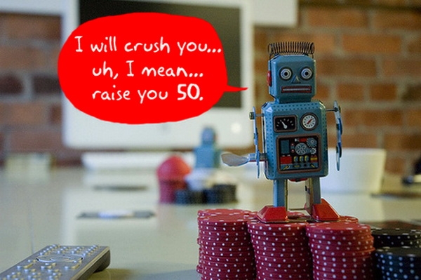 Покерные боты всегда делают ставки с одинаковой частотой по времени. Настоящие же соперники ставят моментально, а порой даже и под самый конец отведенного на это времени. Обратите внимание на этот момент. Например, если один из ваших оппонентов делает ставки все время примерно за 3 секунды, вероятно, это и есть бот.